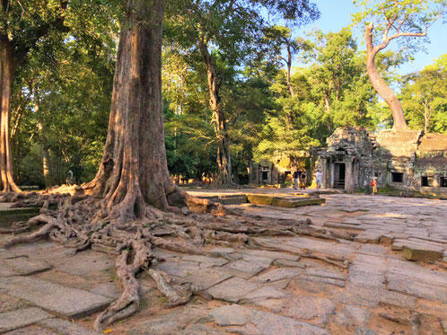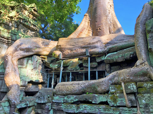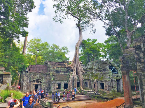 ガジュマルの木が遺跡に絡まり、映画「トゥームレイダー」でアンジェリーナ・ジョリーが訪れた所です