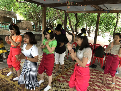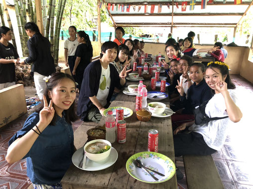 カンボジアの田舎や文化や村や高床式や小学校も見学します。